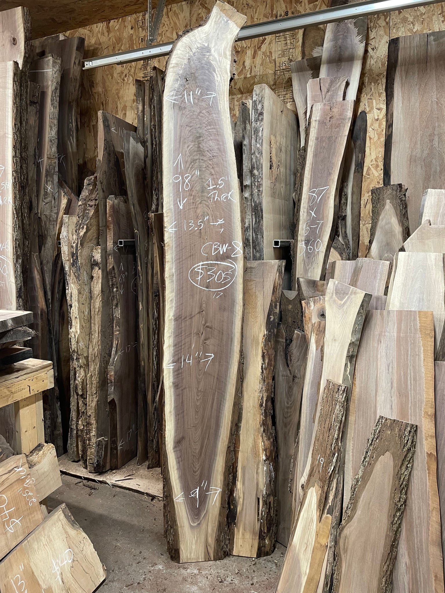 This slab of Canadian Black Walnut has been kiln dried and flattened to 1.5” thick. Great colour and Curly grain patterns.