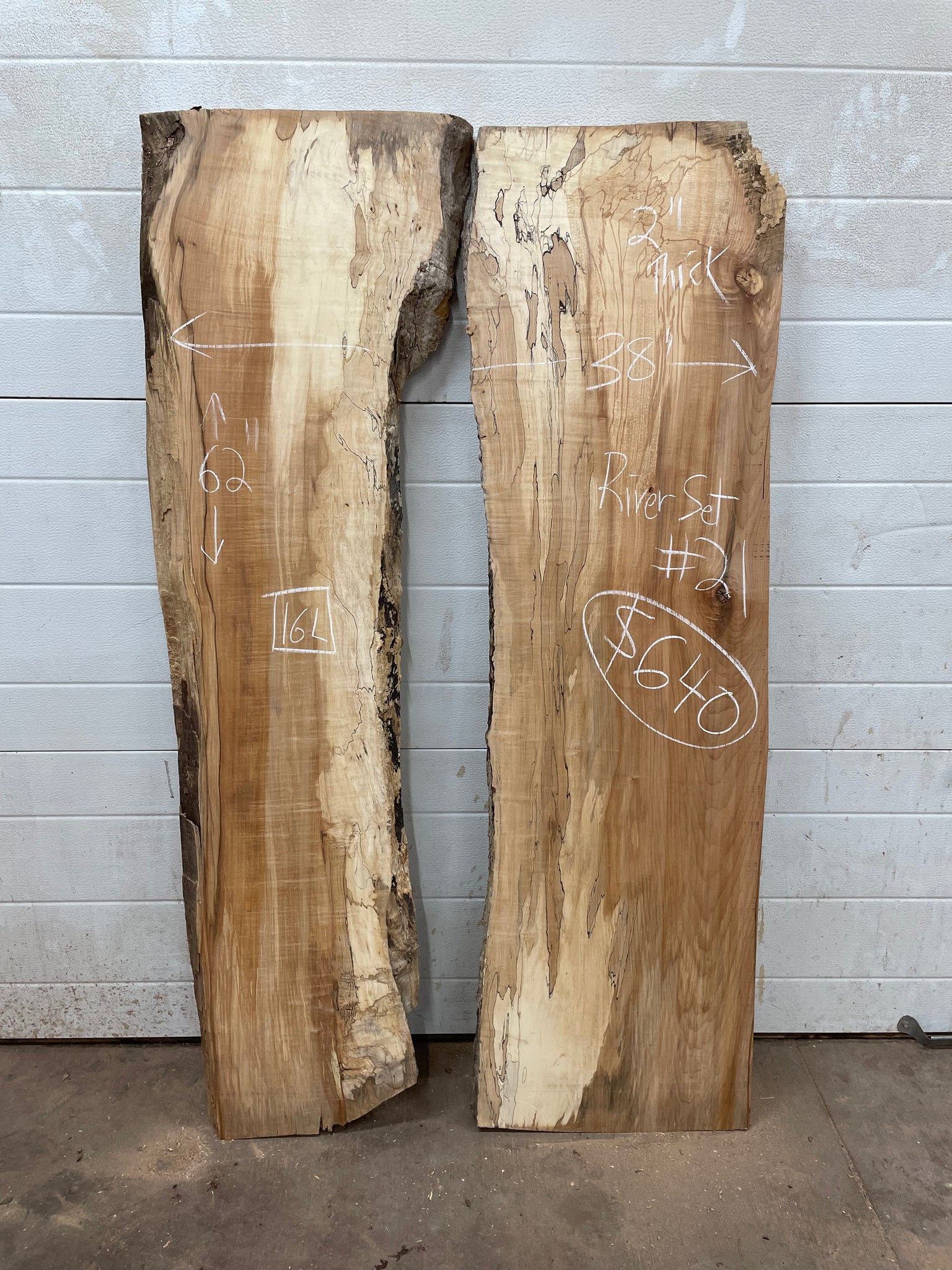 Carefully selected and cut, these beautiful Spalted Maple slabs will make the perfect Epoxy River Dining Table. You just need to build your own mould and add some epoxy. Slabs are 62” long X 2” Thick.  You get to pick your table width anywhere from 38-44”